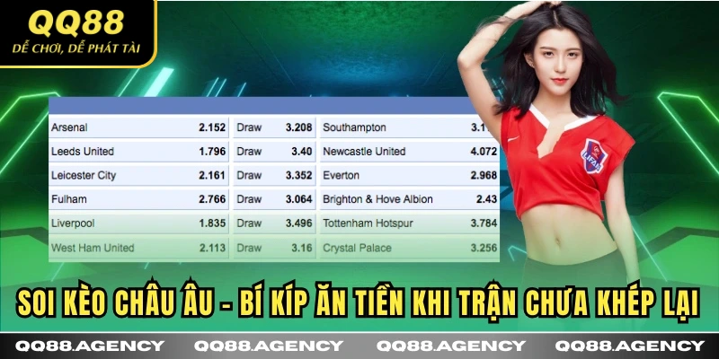 Soi kèo châu Âu luôn là chủ đề được nhiều bet thủ quan tâm. Đây là loại hình đặt cược đơn giản, dễ hiểu nhưng lại ẩn chứa nhiều chiến thuật tinh tế để tối ưu lợi nhuận. Nếu bạn muốn biết rõ cách phân tích 1 trận đấu, cách đọc tỷ lệ như thế nào và đâu là bí quyết để tăng cơ hội chiến thắng, bài viết này của QQ88 sẽ phân tích chi tiết để bạn tự tin hơn trước mỗi quyết định đặt cược.
